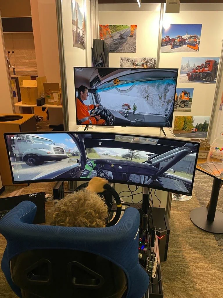 Návštěvníci si mohli vyzkoušet jízdu na trenažéru, což sklidilo velký úspěch. Stejně tak předvádění vystaveného vozidla MB ACTROS ve venkovích prostorech.