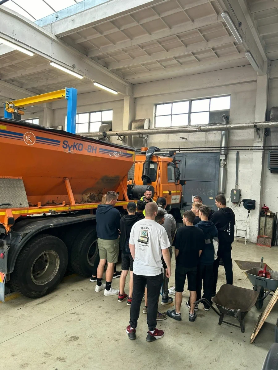Žákům byla ukázána technika, která denně zajišťuje běžnou údržbu silnic v okrese Liberec a kterou by mohli případně opravovat pokud si zvolí praxi a letní brigádu právě u nás. Předvedený chod dílny funguje ve všech našich střediscích napříč krajem a proto si žáci mohou vybrat dílnu, která je nejblíže jejich domovu.