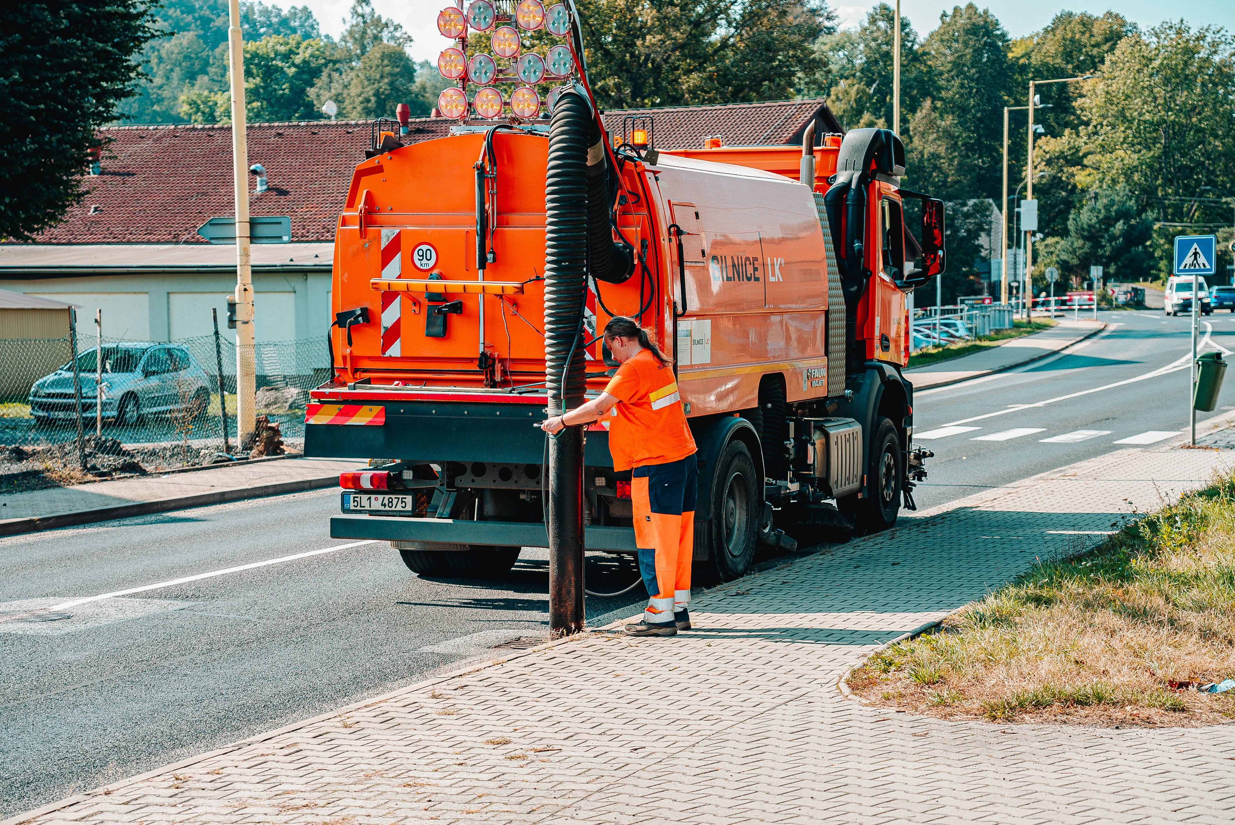 - mytí vozovek a kanalizace tlakovou vodou s rozstřikovací lištou